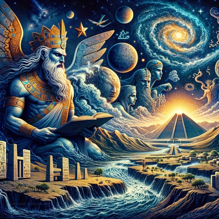 The Anunnaki are often depicted as a powerful group of gods who governed the earth and the heavens. Among their number, certain gods were associated with specific aspects of the natural world and human society, such as Enlil, the god of air and storm, and Enki (later known as Ea), the god of water and wisdom. The hierarchy among these deities and their individual attributes and responsibilities were detailed in various myths and epics, including the Enuma Elish and the Epic of Gilgamesh.